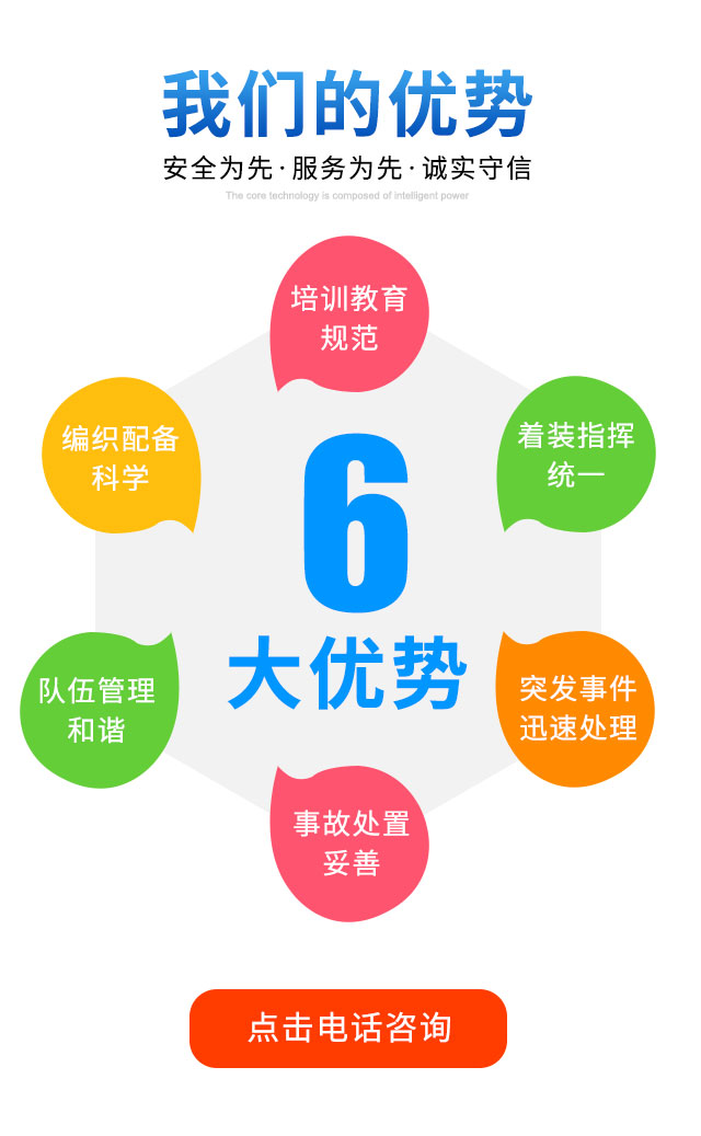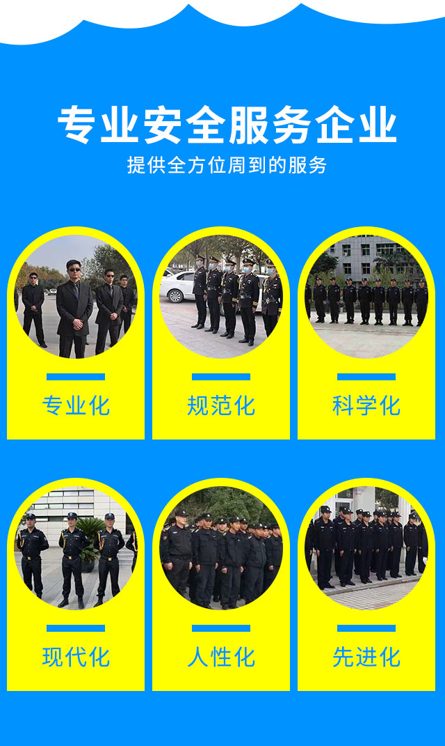 公司引进运用新的科学运营管理理念和安全策略,结合自有的安全服务理念和行业发展过程中的丰富服务经验,逐步形成具有中国特色的专业安全服务企业。为我们的客户提供更加专业化,人性化,先进化的保安服务,根据相关领域的发展和客户需要,提供门卫、巡逻、守护、区域秩序维护等全方位周到的服务。公司拥有一支专业管理骨干团队,专业保安人士组成,作风正派、技术全面、形象佳、素质好,执行力强,沟通能力强,并对保安培训,运营管理,处理突发事件,安全护卫、消防、技防监控等安全工作有着丰富的经验;公司实行统一军事化管理驻勤制度,对录用和聘任的项目经理和保安人员均实施考核上岗制度,并建立了完善的个人档案和签定有效合法的工作合同,不定期的对其工作巡查、定期对保安队员进行法律、法规及思想道德方面的教育。